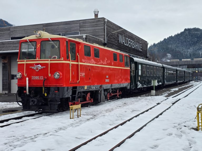 Im Dampfzug des Wälderbähnles fahren wir von Schwarzenberg nach Bezau. Dieses, von einstmals 35 km Streckenlänge erhaltene Stück österreichischer Schmalspurbahn unweit des Bodensees, zeigt in anschaulicher Weise den Nebenbahnbetrieb der Region.