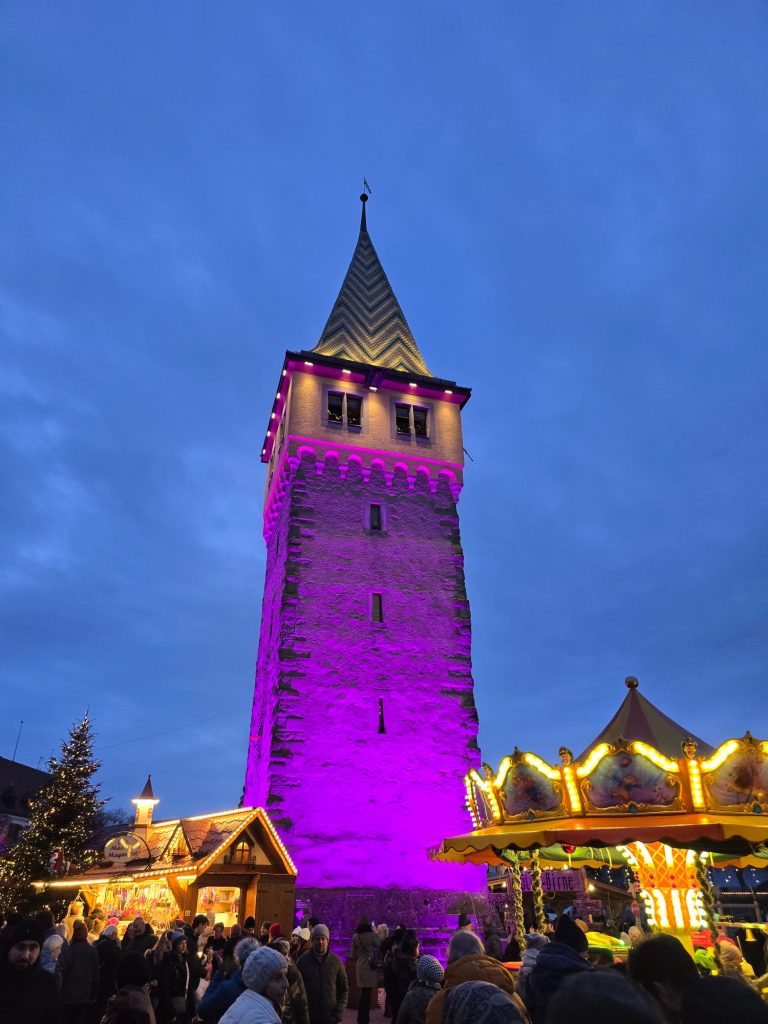 Der Nachmittag gehört ganz der Stadt im Bodensee: Lindau. Die Altstadtinsel ist mittels Damm für Eisenbahn und Straßenverkehr mit dem Ufer verbunden. Nutzen Sie die Freizeit für den „Lindauer Eisenbahndamm“, die Altstadt und eben auch die Lindauer Hafenweihnacht!